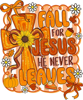Fall for Jesus He Never Leaves DTF Transfer | Autumn Faith Cross Design