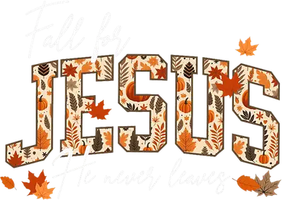 Fall for Jesus He Never Leaves DTF Transfer - Autumn Faith Design