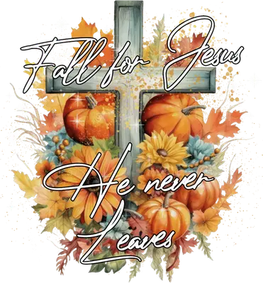 Fall for Jesus He Never Leaves DTF Transfer | Christian Autumn Cross Design