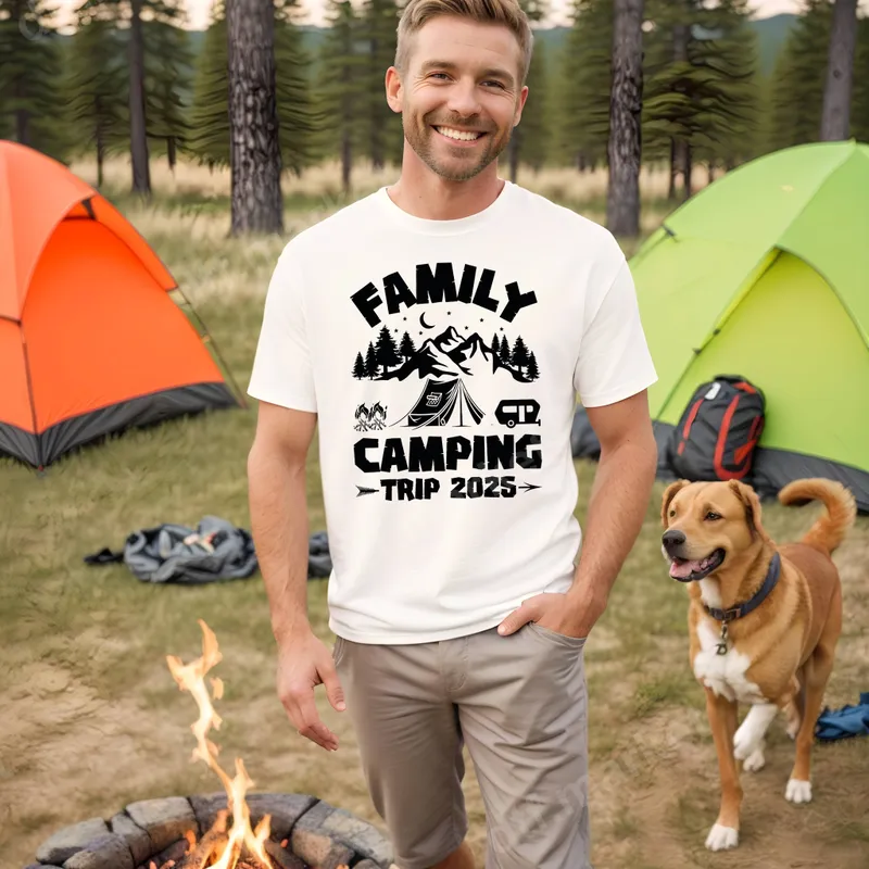 See allEmbark on your next great adventure with our "Family Camping Trip 2025" DTF transfer. This ready to press design features a classic silhouette of majestic mountains, towering pine trees, a cozy campfire, a tent under a crescent moon and stars, and a charming RV camper trailer, all centered around the exciting trip year. It’s the perfect direct to film transfer to commemorate upcoming family getaways and create lasting memories. This versatile heat transfer is ideal for families planning their annual camping trip, outdoor enthusiasts, or groups looking for matching apparel for a wilderness adventure. It makes a fantastic personalized gift for parents, grandparents, or kids who love the great outdoors. Perfect for family reunions, summer vacations, national park visits, or any group outing into nature. Applying this iron on transfer is simple and mess-free. Our high-quality heat press design works beautifully on various materials, including cotton, polyester, and their blends. For best results, use a heat press at 300-325°F for 15 seconds with medium pressure. No tedious weeding is required, just press and peel for a professional finish. This iron on decal can even be applied with a household iron. Experience superior quality with every apparel transfer from dtf.market. Our direct to film transfers boast vibrant colors, exceptional durability, and are engineered to be crack-resistant and soft to the touch. Made with professional-grade DTF film and strong adhesive, your custom transfer will withstand countless washes, ensuring your family's camping memories stay bright for years to come.