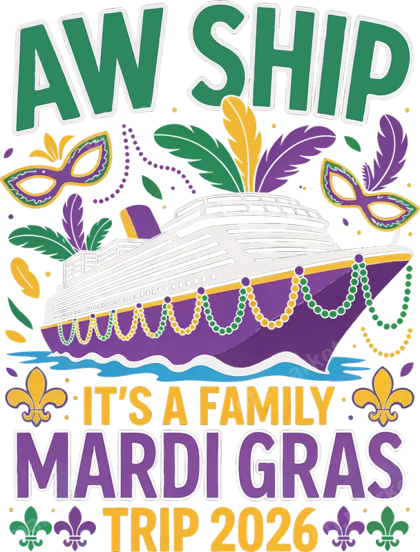 Family Mardi Gras Trip 2026 Cruise DTF Transfer | Aw Ship Design