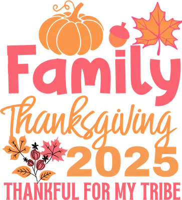 See allThis heartwarming "Family Thanksgiving 2025 Thankful For My Tribe" DTF transfer captures the essence of gratitude and togetherness. Featuring charming autumn elements like a pumpkin, acorn, and vibrant fall leaves in shades of orange and coral, this design exudes a festive and loving vibe. The playful typography emphasizes family bonds, making this vibrant, ready to press design perfect for celebrating the holiday season with those you cherish most. Ideal for families planning matching shirts for their annual feast, individuals looking to express gratitude, or small businesses preparing unique fall apparel. This design is also a wonderful choice for crafters creating custom holiday gifts or Etsy sellers looking to stock up on popular festive items. It makes a great iron on transfer for hostess gifts, memorable family gatherings, or simply to show appreciation for your closest friends and relatives. Applying this heat press transfer is simple and efficient. It works beautifully on a wide range of fabrics including cotton, polyester, cotton-poly blends, and can even adhere to nylon. Achieve professional results using a heat press set at 300-325°F for 15 seconds with medium pressure, or with a household iron. No tedious weeding required – just peel and press! Create stunning custom t-shirts, cozy hoodies, festive sweatshirts, practical tote bags, adorable baby onesies, or kitchen aprons. Experience professional results with this high-quality ready to press transfer. Our direct to film transfers feature rich, full-color printing with exceptional detail that resists cracking and feels soft to the touch, not heavy or stiff like traditional vinyl. Each durable heat transfer decal ensures your designs look fantastic and last through many washes, making every garment a cherished memory of your special Thanksgiving 2025 celebration.