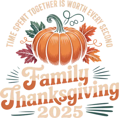 See allEmbrace the warmth of the season with this delightful Family Thanksgiving 2025 DTF transfer. Featuring a vibrant orange pumpkin at its heart, surrounded by a cascade of rich autumn leaves in shades of red, green, and gold, this design radiates gratitude and togetherness. The charmingly retro typography proclaims "Family Thanksgiving 2025" with the heartfelt message "TIME SPENT TOGETHER IS WORTH EVERY SECOND" arcing above. This eye-catching design is a perfect ready to press graphic to celebrate the most cherished fall holiday. This festive design is an ideal iron on transfer for anyone looking to personalize their holiday attire or create memorable gifts. It's perfect for families planning matching shirts for their Thanksgiving dinner, hosts wanting to add a custom touch to their home decor, or small businesses creating seasonal apparel. Use this heat transfer design to celebrate family reunions, fall festivals, or simply to show your appreciation for loved ones during the autumn season. It also makes a wonderful gift for grandparents, parents, or anyone who loves the spirit of Thanksgiving. Applying this heat press transfer is a breeze! It adheres beautifully to a wide range of materials, including cotton, polyester, cotton-poly blends, and even nylon, making it incredibly versatile. Simply use a heat press at 300-325°F for 15 seconds with medium pressure, or apply with a household iron. There's no tedious weeding required—just peel and press for instant customization. Transform plain custom t-shirts, cozy hoodies, sweatshirts, tote bags, pillow covers, baby onesies, aprons, or denim jackets. For long-lasting vibrancy, wash your decorated items inside out and tumble dry low. Experience professional quality with every application. This ready to press transfer boasts vibrant, full-color printing with exceptional detail, ensuring your design truly pops. It's crack-resistant and incredibly soft to the touch, without the heavy, stiff feel of traditional vinyl. Each direct to film transfer is printed on premium DTF film, engineered with a strong adhesive backing for flawless and durable results, helping you create professional-looking items every single time.