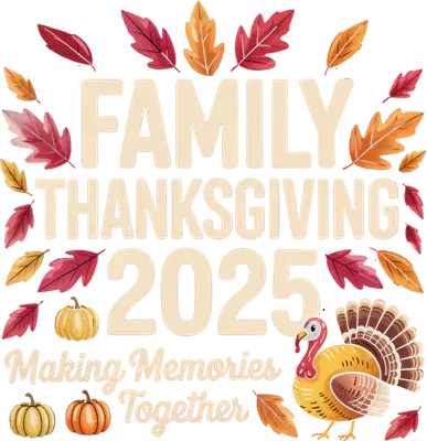 See allCelebrate togetherness this holiday season with our heartwarming Family Thanksgiving 2025 DTF transfer. This festive design features bold, cream-colored text reading "FAMILY THANKSGIVING 2025" and "Making Memories Together," framed by vibrant autumn leaves in rich reds, oranges, and yellows. A charming cartoon turkey and two plump pumpkins complete the cozy fall scene, making it a perfect ready to press design for creating unique holiday apparel. This delightful iron on transfer is perfect for families planning their annual Thanksgiving feast, hosts looking to create memorable party favors, or small businesses aiming to offer unique, dated holiday apparel. It’s an ideal gift for grandparents, parents, or anyone who cherishes family traditions and wants to commemorate their special 2025 gathering. Use this heat transfer design to make matching shirts for your entire family and capture those cherished moments. Our heat press transfer is incredibly versatile, working beautifully on a wide range of materials including cotton, polyester, cotton-poly blends, and even nylon. Application is simple: use a heat press at 300-325°F for 15 seconds with medium pressure, or apply with a household iron. There's no weeding required—simply peel and press! It's perfect for custom t-shirts, cozy hoodies, comfortable sweatshirts, practical tote bags, festive pillow covers, adorable baby onesies, and even kitchen aprons. For best results and lasting durability, wash garments inside out and tumble dry on low. Experience professional quality with this ready to press transfer, boasting vibrant, full-color printing and exceptional fine detail. Our transfers are crack-resistant and soft to the touch, avoiding that heavy vinyl feel. Each direct to film transfer is printed on premium DTF film with a strong adhesive backing, ensuring a smooth, long-lasting finish that will help you make memories together for years to come.