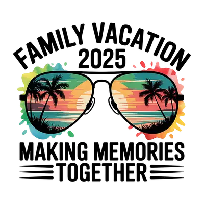 This vibrant DTF transfer captures the spirit of a memorable family vacation. It features stylish aviator sunglasses reflecting a picturesque tropical sunset with palm trees, framed by playful watercolor splashes. The bold text "FAMILY VACATION 2025" and "MAKING MEMORIES TOGETHER" convey joy and unity, making this ready to press design an instant classic for any group trip. This eye-catching iron on transfer is perfect for families planning their 2025 getaway. Ideal for reunion shirts, cruise wear, beach trips, or a thoughtful gift for travel enthusiasts. Small t-shirt businesses and crafters seeking popular heat transfer designs for travel apparel will find this a fantastic seller for creating matching group outfits. Applying this heat press transfer is simple and efficient, adhering beautifully to cotton, polyester, and blends. Use a heat press at 300-325°F for 15 seconds, medium pressure, or a household iron. No weeding required – just peel and press! Create custom t-shirts, hoodies, tote bags, or personalized beach towels. For lasting durability, wash garments inside out, tumble dry low. Each ready to press transfer guarantees superior quality with vibrant, full-color printing and exceptional detail. The soft feel ensures no heavy vinyl sensation, and the design is crack-resistant. Our direct to film transfer is produced on premium DTF film with a robust adhesive, ensuring professional results that make every garment look fantastic.