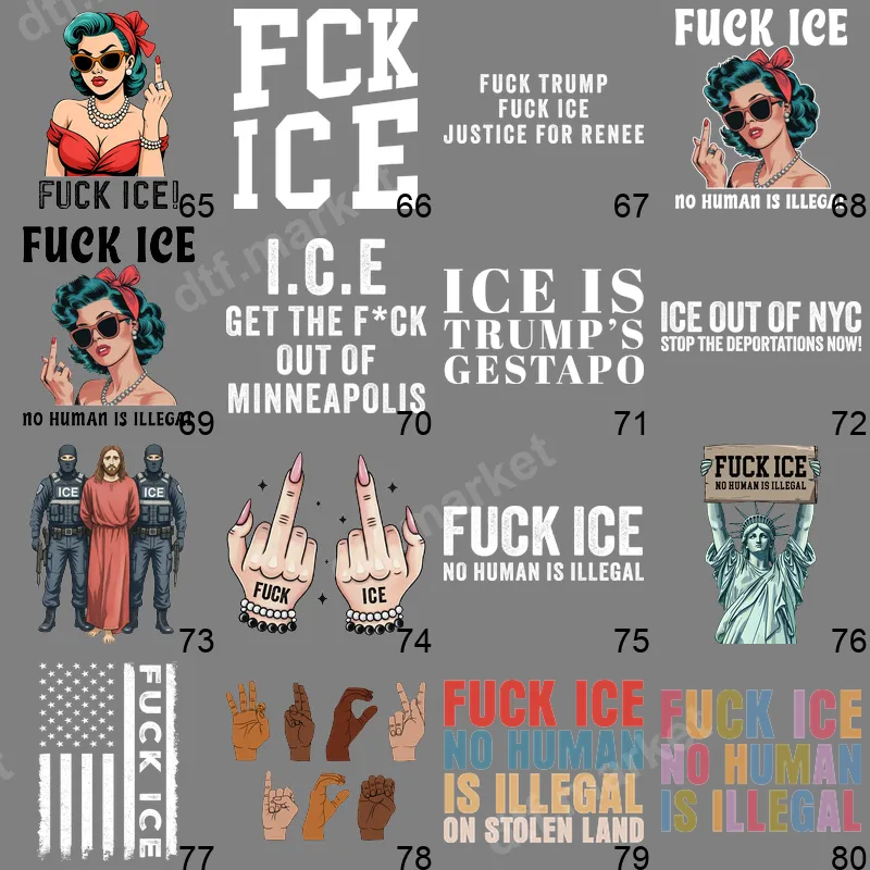 See allThe design features bold, distressed "FCK ICE" typography, immediately conveying a powerful anti-ICE message. Below, "No Human Is Illegal" reinforces the human rights advocacy theme. This compelling DTF transfer is designed for those who want to express their solidarity and political stance with clarity and impact. It's a ready to press design that speaks volumes without saying a word. This powerful design is ideal for activists, human rights advocates, social justice warriors, and anyone who believes in compassionate immigration policies. It's perfect for rallies, protests, community events, or simply everyday wear to spread awareness and spark conversations. It makes a thoughtful and impactful gift for like-minded friends and family members who are passionate about immigrant rights and social change. Applying this versatile heat press transfer is incredibly easy, suitable for a wide range of fabrics including 100% cotton, polyester, and various cotton/poly blends. For best results, use a heat press at 300-325°F for 15 seconds with medium, even pressure. Unlike traditional vinyl transfers, there's absolutely no weeding required, saving you time and effort. Simply press, peel, and wear your statement. Crafted using professional-grade DTF film and premium inks, this apparel transfer ensures vibrant colors and sharp details that resist cracking, peeling, and fading wash after wash. The result is a high-quality finish that feels soft to the touch, not stiff or bulky. With its strong adhesive, this direct to film transfer provides exceptional durability, making your message last as long as your conviction.