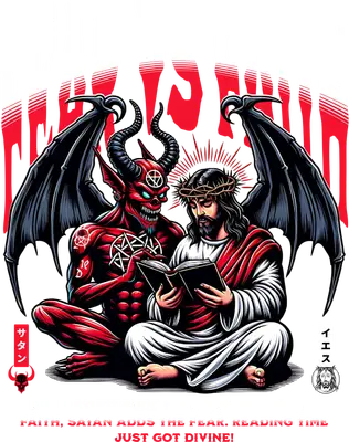 Fear vs Faith Bible Study Buddies DTF Transfer | Jesus & Satan Edgy Humor