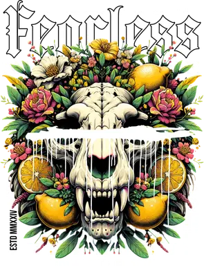 See allDiscover our striking 'Fearless' gothic skull DTF transfer, a bold statement piece bursting with vibrant contrasts. This unique design features a stylized skull, subtly split and surrounded by lush green foliage, bright yellow lemons, and an array of colorful flowers, including delicate pink peonies and sunny yellow blooms. The word "FEARLESS" in an old English font crowns the design, hinting at a courageous spirit, while subtle white drips add an edgy, modern touch. This high-quality, ready to press DTF transfer combines the macabre with natural beauty for a truly captivating aesthetic. This eye-catching design is perfect for individuals who embrace a blend of dark aesthetics and vibrant life, from streetwear enthusiasts to those who appreciate a unique artistic flair. It makes an excellent iron on transfer for personalizing your wardrobe or creating distinct merchandise for your small business. Whether you're making a gift for a friend with a bold personality or stocking your boutique with edgy apparel, this heat transfer design is sure to stand out at music festivals, casual gatherings, or as an everyday expression of defiance. Applying this heat press transfer is simple and efficient. It adheres beautifully to a wide range of fabrics including cotton, polyester, cotton-poly blends, and even nylon. For best results, use a heat press at 300-325°F for 15 seconds with medium pressure, or apply with a household iron following similar guidelines. Forget tedious weeding; this custom t-shirt transfer is ready to peel and press. It’s perfect for custom t-shirts, hoodies, sweatshirts, tote bags, denim jackets, and even pillow covers. For lasting durability, wash garments inside out and tumble dry low. Our ready to press transfer features vibrant, full-color printing with exceptional detail, ensuring every petal and skull contour is rendered perfectly. Enjoy a crack-resistant, soft-to-the-touch finish that lacks the heavy, restrictive feel of traditional vinyl. Each direct to film transfer is produced on premium DTF film with a robust adhesive backing, guaranteeing professional-grade results and long-lasting wear for all your apparel and accessory projects.