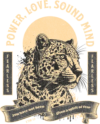 Fearless Leopard DTF Transfer | Power Love Sound Mind 2 Timothy 1:7
