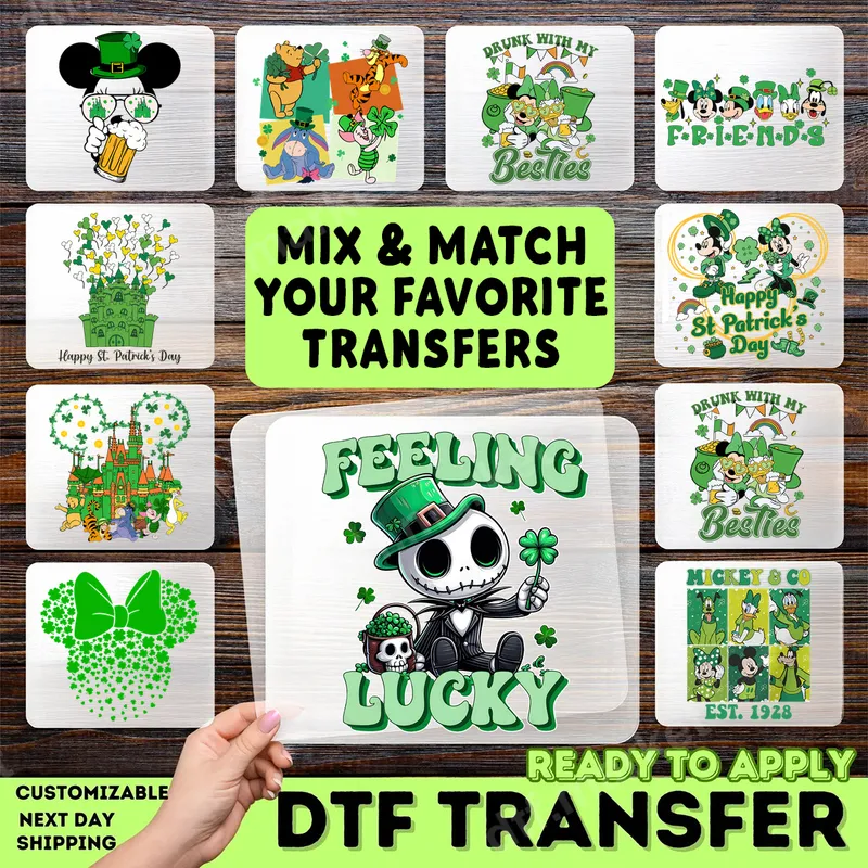 See allUnleash your inner spooky-cute spirit this St. Patrick's Day with our "Feeling Lucky" skeleton DTF transfer. This playful design features a charming skeleton character sporting a vibrant green leprechaun hat, holding a lucky four-leaf clover, and accompanied by a tiny pot of gold with a skull. The bold "FEELING LUCKY" text captures the festive mood perfectly. This high-quality DTF transfer is ready to press, allowing you to easily personalize your apparel and accessories. This unique design is perfect for anyone looking to add a personalized touch to their St. Patrick's Day celebrations. Ideal for festive parties, parades, or just showing off your holiday spirit, this heat transfer makes a fantastic gift for friends, family, or anyone who loves a blend of spooky and lucky. Create custom transfer apparel that truly stands out with this distinctive design. Applying this direct to film transfer is straightforward. It adheres beautifully to a wide range of materials, including cotton, polyester, and various fabric blends. For best results, use a heat press at 300-325°F for 15 seconds with medium pressure, followed by a cool peel. For home users, a household iron can also be used with careful application. Say goodbye to tedious weeding – this heat press design is ready to apply right out of the package. Experience professional-grade results with our durable and vibrant heat press ready transfers. The colors are designed to remain vivid wash after wash, resisting cracking and fading, while offering a soft, flexible feel on your garment. Crafted with premium DTF film and strong adhesive, this apparel transfer ensures a long-lasting, high-quality shirt design that will be admired by all your holiday revelers.