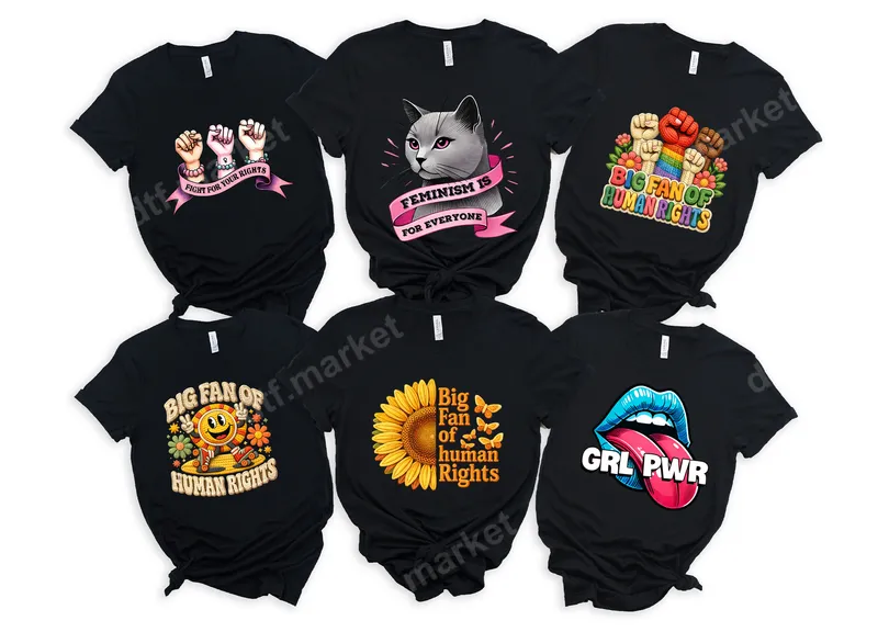 See allThis empowering DTF transfer features an adorable yet determined grey cat, beautifully rendered with striking pink eyes and delicate whiskers. A vibrant pink ribbon proudly declares "FEMINISM IS FOR EVERYONE", making this design a powerful statement piece. This ready to press design is perfect for anyone passionate about equality and feline friends, combining advocacy with charming artistry. This unique design is ideal for feminists, cat lovers, and social justice advocates looking to express their beliefs with style. It's a thoughtful gift for friends and family who champion women's rights, perfect for International Women's Day, protests, or everyday wear to spark conversations. Show your unwavering support for gender equality with this eye-catching and meaningful heat press transfer. Applying this direct to film transfer is straightforward and efficient. For best results, use a heat press at 300-325°F for 15 seconds with medium, even pressure. This iron on transfer also works well with a household iron, providing versatility for all crafters. There's no tedious weeding required, making it a quick and easy way to customize your t-shirt transfer projects. Crafted using professional-grade DTF film, this apparel transfer boasts incredibly vibrant colors that pop on any fabric. The design is crack-resistant, ensuring longevity and durability through countless washes, maintaining its soft-to-touch feel. With its strong adhesive, this heat press ready design adheres seamlessly to cotton, polyester, and various fabric blends, delivering a professional finish every time.