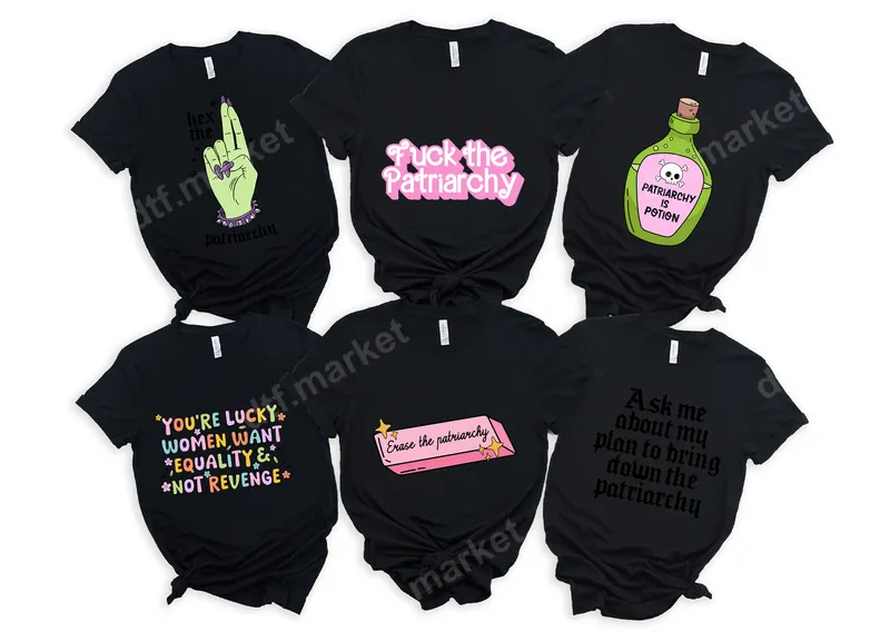 See allDive into our collection of empowering DTF transfer designs that boldly challenge the patriarchy. This set features witty and powerful statements like "Hex the Patriarchy," "Fuck the Patriarchy," "Patriarchy is Poison," and "You're Lucky Women Want Equality & Not Revenge." Each design is a high-quality, ready to press direct to film transfer, perfect for making a strong statement. The vibrant colors and sharp details ensure your message stands out. These unique heat transfer designs are ideal for feminists, activists, and anyone passionate about women's rights and equality. They make perfect gifts for friends, family, or yourself for International Women's Day, protest rallies, or just everyday wear to spark conversations. Show your unwavering support for a more equitable world and wear your convictions proudly. Applying these heat press transfers is straightforward, whether you're a seasoned crafter or a beginner. Our iron on transfers work beautifully on a wide range of fabrics, including cotton, polyester, and various blends. For best results, use a heat press at 300-325°F for 15 seconds with medium pressure. No tedious weeding is required; simply press and peel for a flawless finish. Crafted with professional-grade DTF film and strong adhesive, these apparel transfers promise exceptional durability. The colors remain vibrant wash after wash, resisting cracking and fading, all while maintaining a soft, flexible feel on your garment. Elevate your wardrobe with a powerful statement piece that combines superior quality with impactful design.