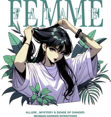 Unleash a captivating allure with this striking Femme Fatale DTF transfer, featuring a mysterious anime-style woman adorned with dark hair and expressive eyes, framed by lush tropical leaves. The bold 'FEMME FATALE' typography at the top, complemented by the evocative phrase 'ALLURE, MYSTERY & SENSE OF DANGER. WOMAN DARKER INTENTIONS' below, sets an edgy and confident mood. This ready to press design is perfect for those who embrace unique, statement-making fashion. This iron on transfer is ideal for streetwear enthusiasts, anime fans, and anyone with a love for dark aesthetics and empowered female imagery. It makes an exceptional heat transfer design for individuals looking to express their enigmatic side, or for small apparel businesses and Etsy sellers curating edgy collections. Perfect for everyday wear, music festivals, or as a unique gift for a friend who embodies this captivating spirit. Applying this heat press transfer is incredibly easy, making it perfect for custom t-shirts, hoodies, sweatshirts, tote bags, and even denim jackets. It adheres beautifully to cotton, polyester, and blends, with no weeding required—just press and peel. For best results, use a heat press at 300-325°F for 15 seconds with medium pressure, or apply with a household iron. To maintain durability, wash garments inside out and tumble dry low. Experience premium quality with every ready to press transfer. Our direct to film transfers boast vibrant, full-color printing with exceptional detail, capturing every nuance of the design. The crack-resistant finish ensures your apparel stays looking fresh, while the soft-hand feel means no heavy vinyl bulk. Each DTF transfer is printed on high-grade film with a strong adhesive, guaranteeing professional, long-lasting results for all your custom apparel projects.