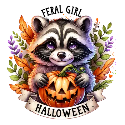 Feral Girl Raccoon Halloween Pumpkin DTF Transfer