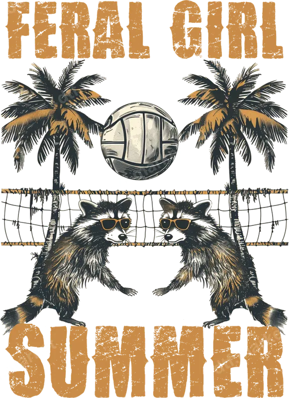 Feral Girl Summer Raccoons Volleyball DTF Transfer