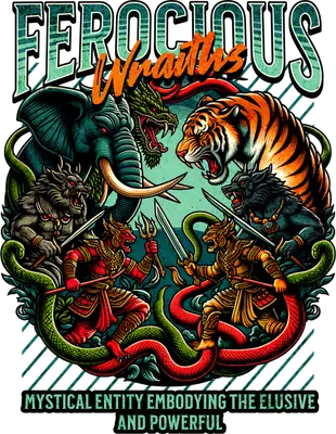 Ferocious Wraiths Mythical Battle DTF Transfer - Elephant Tiger Dragon Warriors