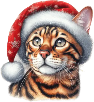 Festive Bengal Cat Santa Hat DTF Transfer | Christmas Ready to Press