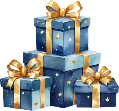 Festive Blue & Gold Gift Boxes DTF Transfer | Holiday Presents