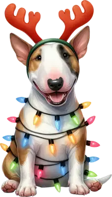 Festive Bull Terrier Christmas Dog DTF Transfer | Reindeer Lights