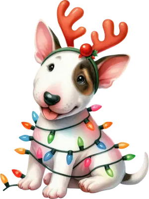 Festive Bull Terrier Puppy Reindeer Christmas Lights DTF Transfer