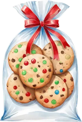 Festive Christmas Cookie Bag DTF Transfer with Red Bow Design
