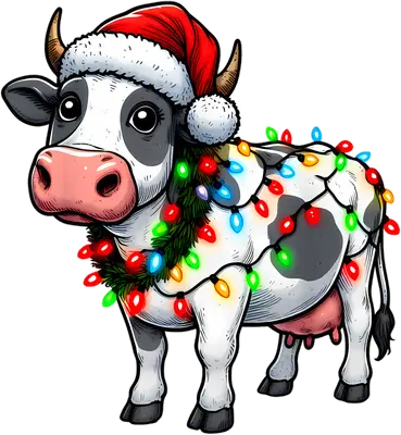 Festive Christmas Cow DTF Transfer with Santa Hat & Lights