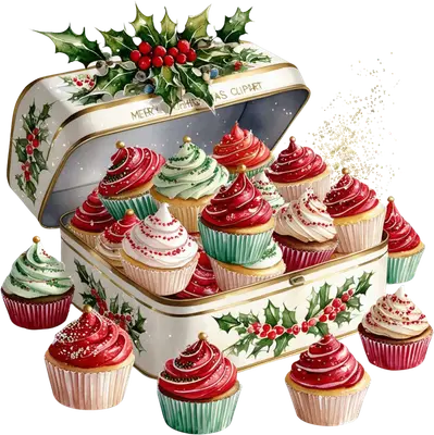 Festive Christmas Cupcakes DTF Transfer | Holly & Treats