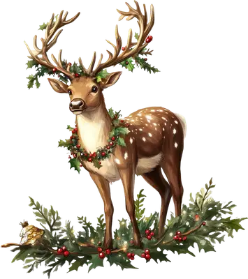 Festive Christmas Deer DTF Transfer with Holly Wreaths