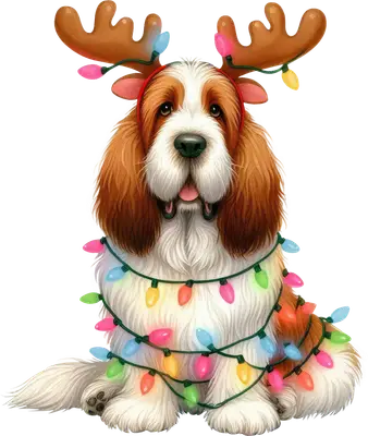 Festive Christmas Dog DTF Transfer | Reindeer Antlers & Lights