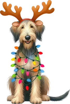 Festive Christmas Dog DTF Transfer | Reindeer Antlers & Lights