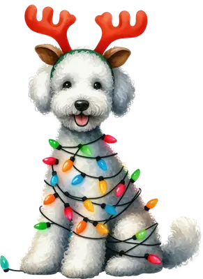 Festive Christmas Dog DTF Transfer with Reindeer Antlers & Lights