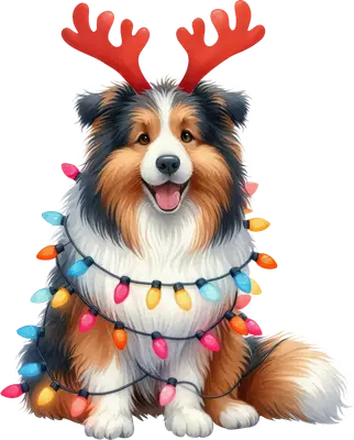 Festive Christmas Dog with Reindeer Antlers & Lights DTF Transfer