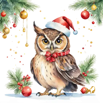Festive Christmas Owl DTF Transfer - Santa Hat & Ornaments
