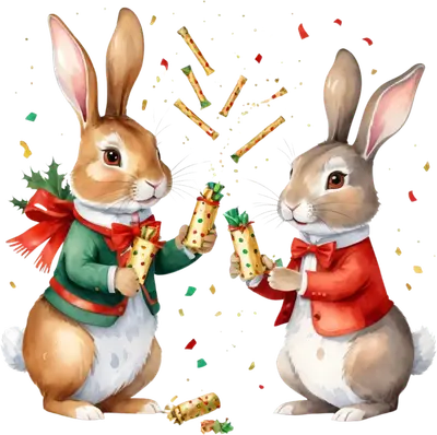 Festive Christmas Rabbits Party Cracker DTF Transfer