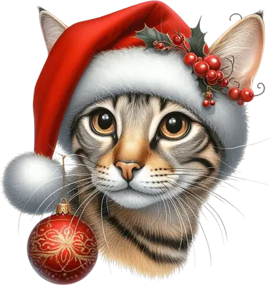 Festive Christmas Tabby Cat Santa Hat DTF Transfer