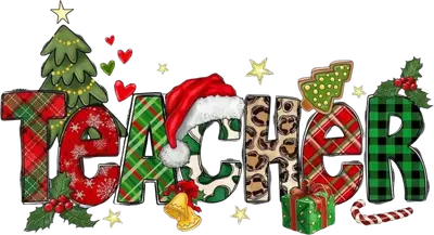 Festive Christmas Teacher DTF Transfer with Plaid & Leopard Patterns