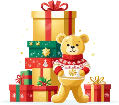 Festive Christmas Teddy Bear & Gift Stack DTF Transfer