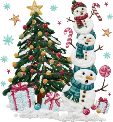 Festive Christmas Tree Snowman Stack DTF Transfer | Holiday Cheer Design