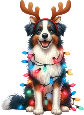 Festive Dog Reindeer Antlers Christmas Lights DTF Transfer