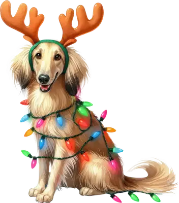 Festive Dog Reindeer Christmas Lights DTF Transfer