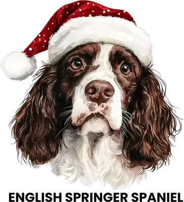 Festive English Springer Spaniel Christmas DTF Transfer | Santa Hat Dog