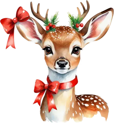 Festive Fawn DTF Transfer | Cute Christmas Deer with Red Bows