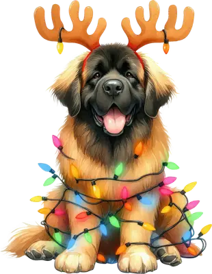 Festive Fluffy Dog Christmas Lights Reindeer Antlers DTF Transfer