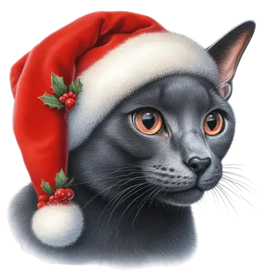 Festive Grey Cat Santa Hat DTF Transfer - Christmas Ready to Press