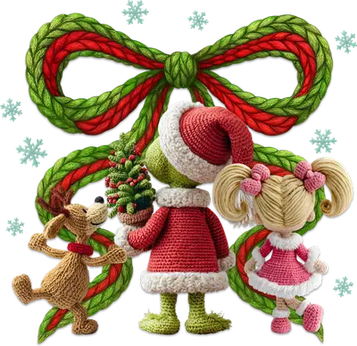 Festive Grinch-Inspired Knitted Christmas Characters DTF Transfer