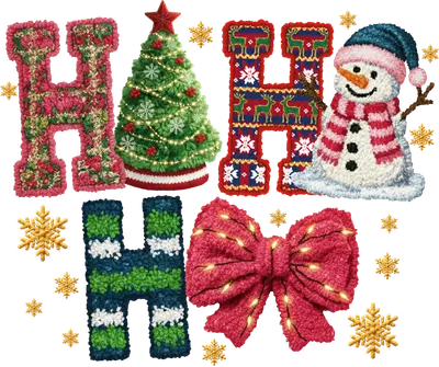 Celebrate the festive season with our unique "HO HO HO" Christmas DTF transfer, a truly eye-catching design that brings warmth and holiday cheer. Each letter and element features a distinct, rich texture – from the charming floral fabric pattern of the first 'H' to the twinkling Christmas tree in the first 'O'. The second 'H' boasts a classic ugly Christmas sweater pattern, followed by an adorable plush snowman for the second 'O'. The final 'HO' features a cozy knitted 'H' and a beautiful red bow adorned with festive lights. Golden snowflakes scattered throughout complete this intricate and delightful ready to press design. This vibrant iron on transfer is perfect for anyone looking to add a personalized touch to their holiday wardrobe or craft projects. Ideal for families creating matching Christmas shirts, crafters designing unique gifts, or small boutique owners stocking up on festive apparel transfers. Whether you're planning for an Ugly Sweater Party, a family gathering, or just spreading joy, this heat transfer design offers a fun and effortless way to customize your garments for the most wonderful time of the year. Applying this heat press transfer is simple and efficient. It adheres beautifully to a wide range of fabrics, including cotton, polyester, cotton-poly blends, and even nylon. For best results, use a heat press at 300-325°F for 15 seconds with medium pressure, or apply with a household iron. Forget tedious weeding; just peel and press! It’s perfect for custom t-shirts, cozy hoodies, sweatshirts, tote bags, festive pillow covers, baby onesies, aprons, and denim jackets. For lasting durability, wash garments inside out and tumble dry low. Experience professional quality with this ready to press transfer, featuring vibrant, full-color printing and exceptional fine detail. Our DTF transfers are designed to be crack-resistant and soft to the touch, ensuring no heavy vinyl feel. Each direct to film transfer is printed on premium DTF film with a strong adhesive backing, guaranteeing professional, long-lasting results that will make your holiday creations stand out.