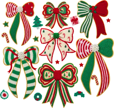 Festive Knitted Christmas Bows DTF Transfer | Holiday Apparel Design