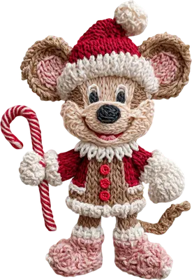 Festive Knitted Christmas Mouse DTF Transfer Holding Candy Cane