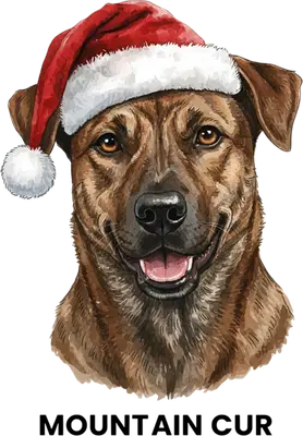 Festive Mountain Cur Dog in Santa Hat Christmas DTF Transfer