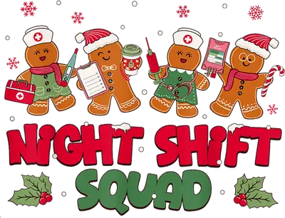 Festive Night Shift Squad Nurse Gingerbread DTF Transfer